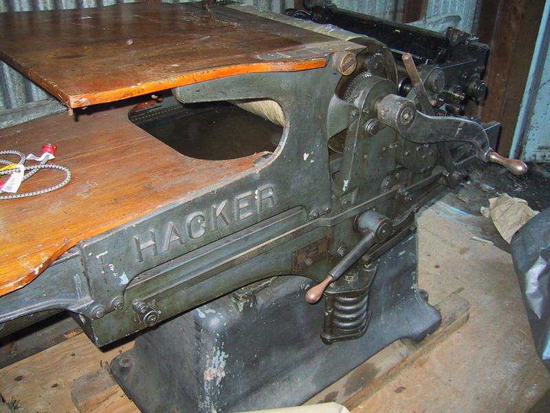 I will soon come into possession of a Hacker H4 proofing press, a fixed-cylinder flatbed letterpress from the 1930s. When delivered, I will be its fifth owner. What a beauty! I'm so excited to fix her up.